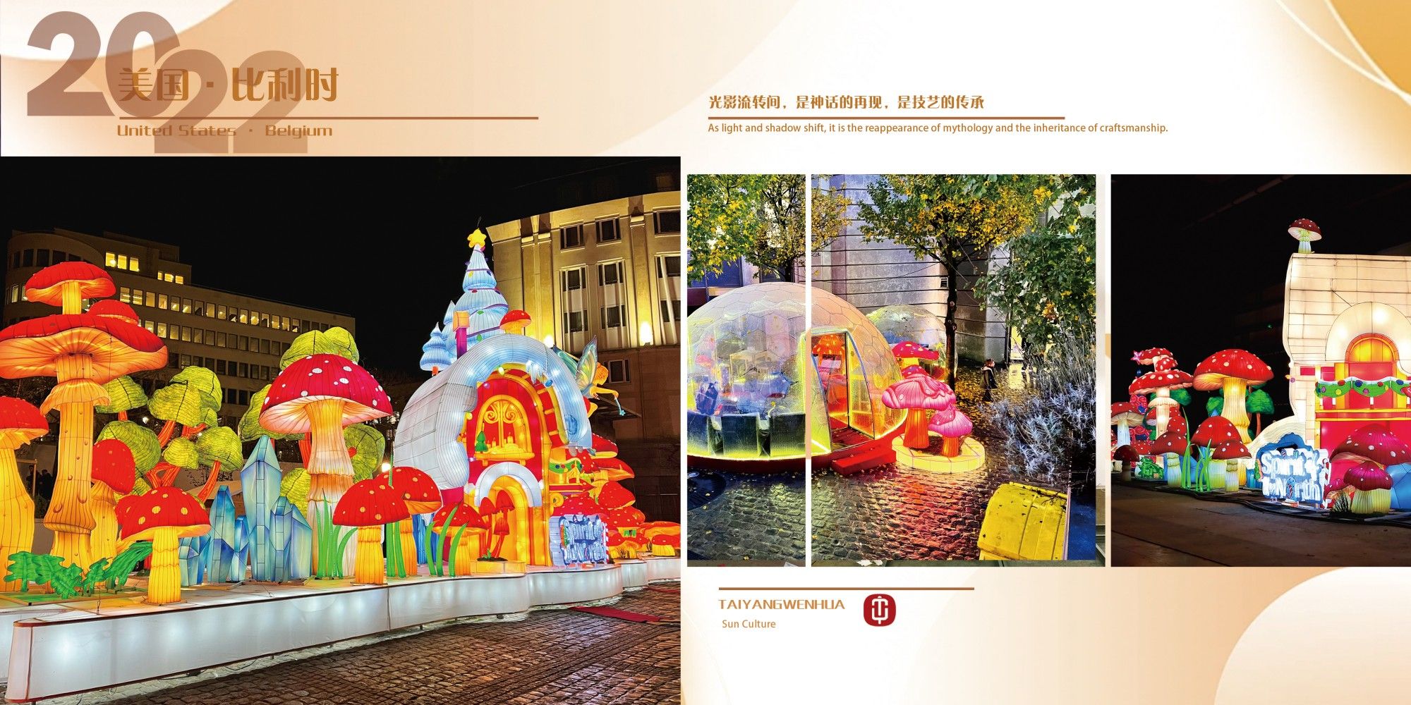 在高楼林立城市中心,太阳文化创意有限公司受邀在美国比利时设计承建灯组。本灯组融合童话美学与新春节庆氛围,打造出沉浸式的奇幻夜游场景,通过超现实的视觉表达。...