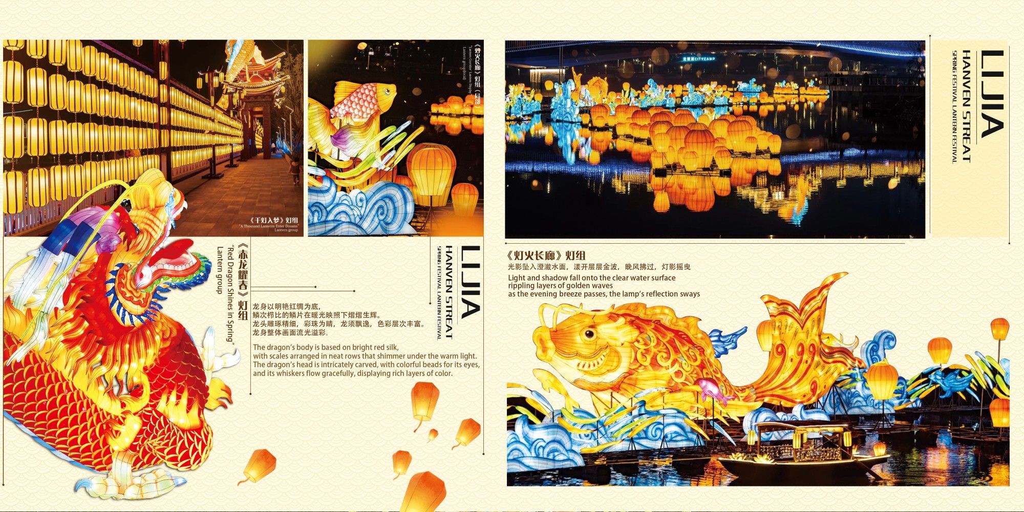 继2024年中秋灯会后,2025年新春,礼嘉天街继续与太阳文化创意有限公司将灯会再升级,以“跃龙门”为主题,布置五大场景,在龙塘湖湖滨公园打造百米“鱼跃龙...
