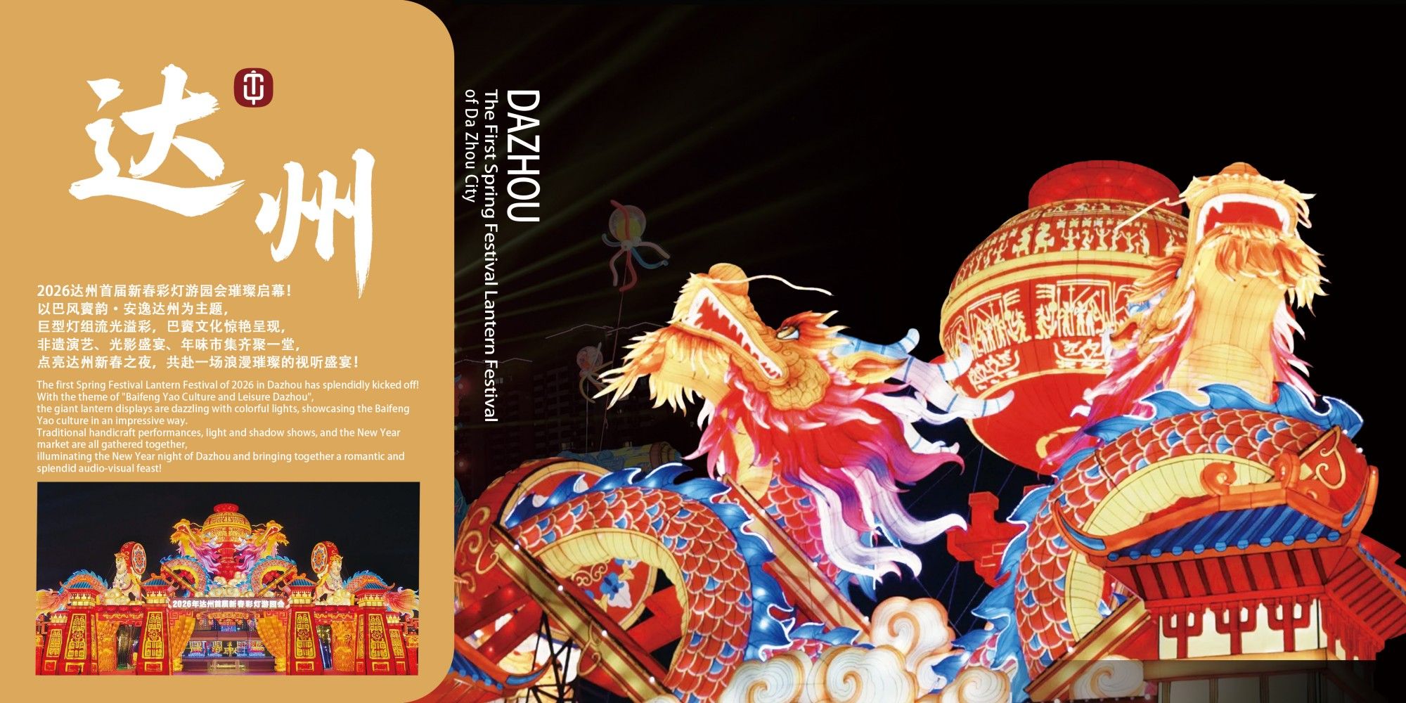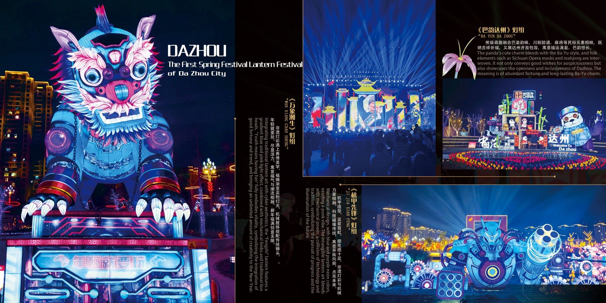 2026达州首届新春彩灯游园会璀璨启幕!以巴风賨韵·安逸达州为主题,巨型灯组流光溢彩。由太阳文化创意有限公司原创设计承建,将自贡彩灯非遗与达州巴賨文化深度融合,“五大主题区域”构建起可看、可听、可互动、可传播的文化深度体验空间。