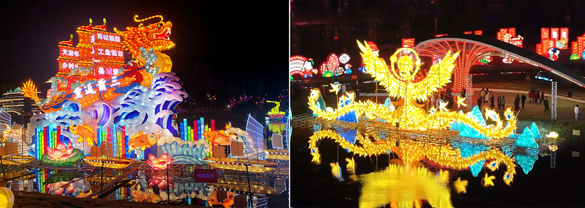 从寓意吉祥如意的“龙凤和鸣”彩门进入,游人可抵达不同的奇妙仙境。“三星荣耀”穿越千年重现古蜀胜景,“龙运德阳”240米环湖吉尼斯龙灯“旌龙”复魅新生,水天龙影,吸引大批游客拍照打卡,“美丽德阳”饱览旖旎多彩的德阳特色,“光之秘境”星河、生肖、童话等光影闪烁,瞬间进入另一重神秘世界。五彩斑斓的灯光映照在波光粼粼的湖面,营造出如诗如画的过年氛围,游客在欣赏灯彩之余,也深入体验德阳的文化魅力。