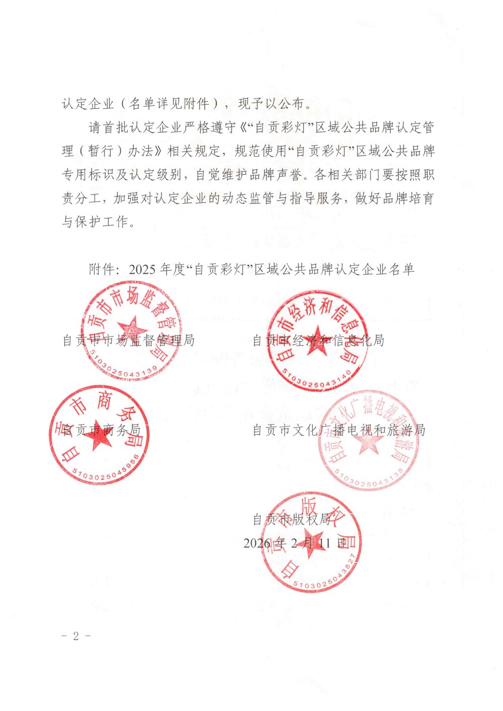 热烈祝贺自贡太阳文化创意有限公司入选“自贡彩灯”区域公共品牌首批认定企业!
