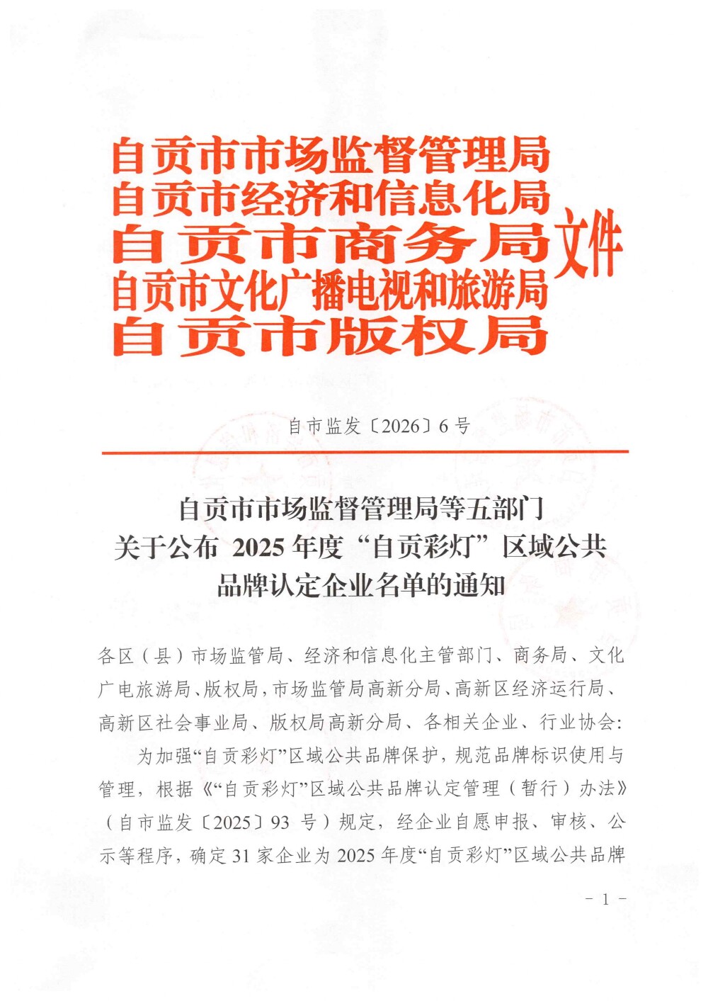 近日,经过企业自愿申报、材料初审、专家评审及社会公示等严格环节,“自贡彩灯”区域公共品牌首批认定企业名单正式揭晓。自贡太阳文化创意有限公司凭借过硬的综合实力、规范的经营管理和突出的行业影响力,从众多参评企业中脱颖而出,成功入选首批31家认定企业名单!